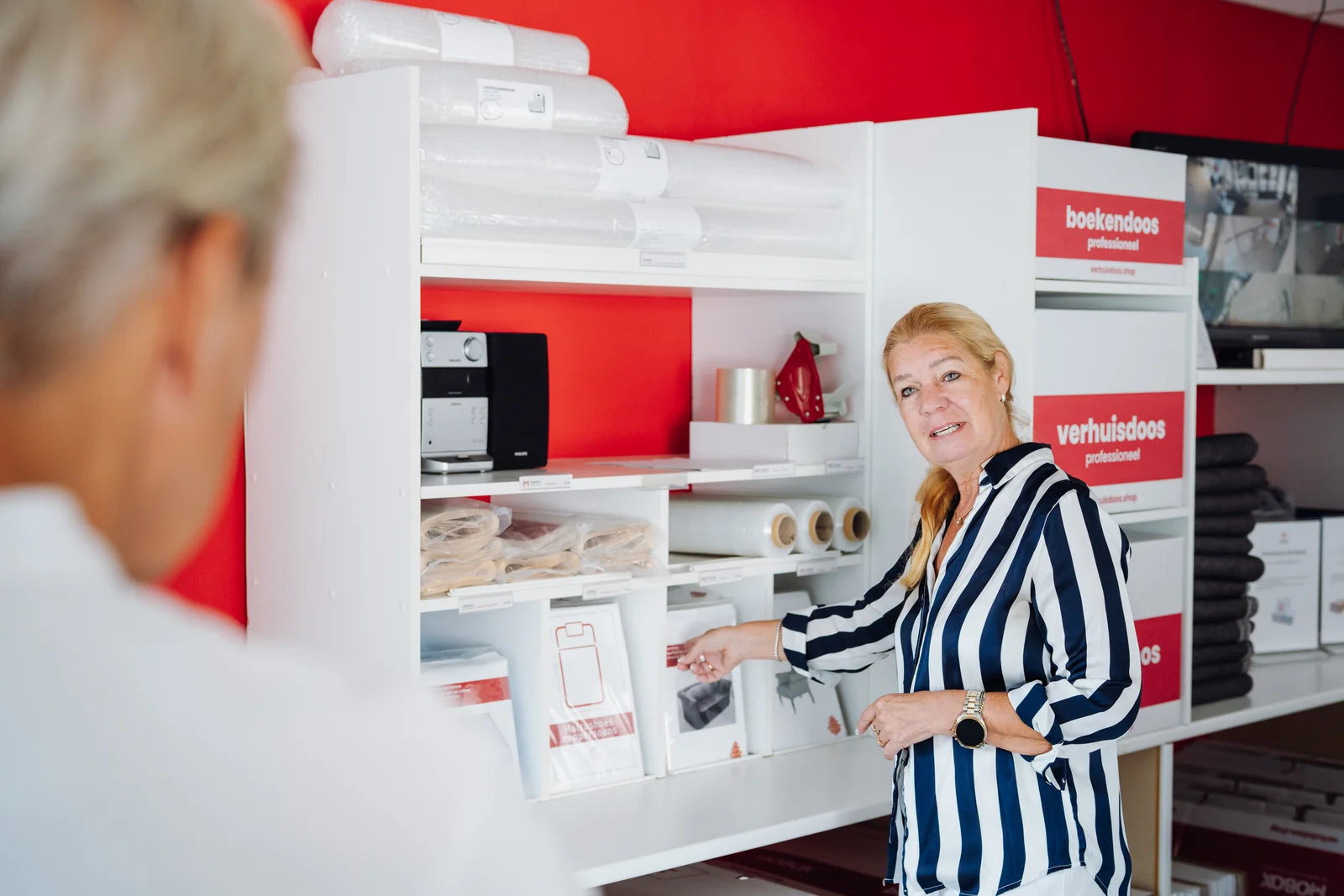 Geen wachttijden of verzendkosten, je koopt je dozen, tape en beschermhoezen gewoon bij onze balie.
